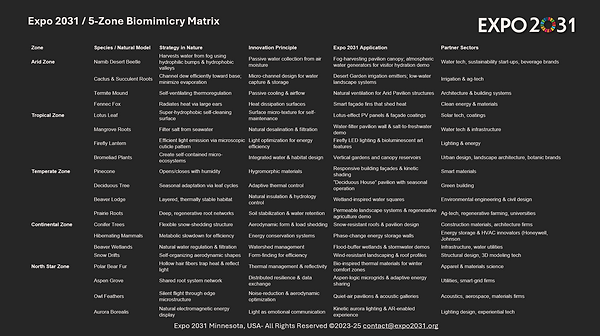 Their work transforms Expo 2031 into a model for regenerative, adaptive design, and their legacy will live on through ongoing research partnerships, educational programming, and the establishment of a Center for Bio-Inspired Futures in Minnesota.